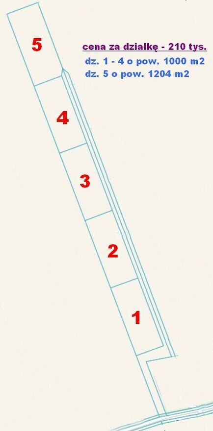 - działki nr 1-4 : powierzchnia pow. 1000 m²; wym. szer. 20m x dł.